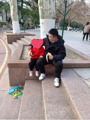 琳琳和爸爸沐浴着春日的暖阳