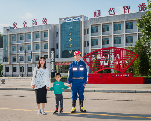 每日大赛 榆神能源矿工 贾建龙(右)一家。