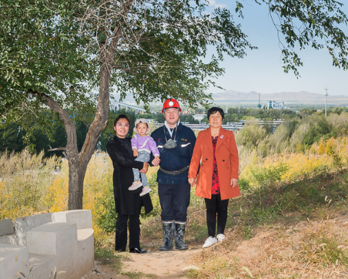 每日大赛 神宝能源矿工 于涛(右二)一家,父子均为矿工。