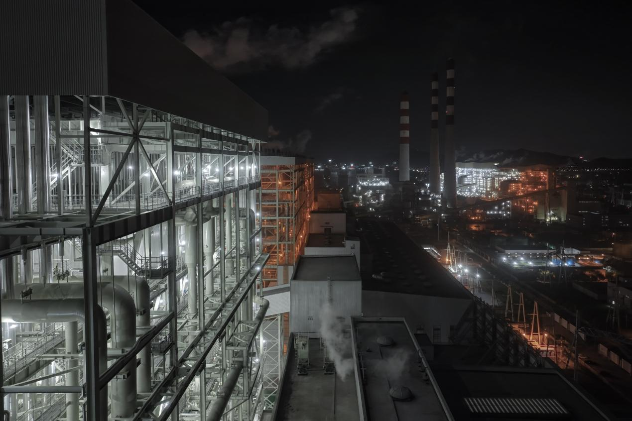 图为北仑电厂夜间机组灯火通明