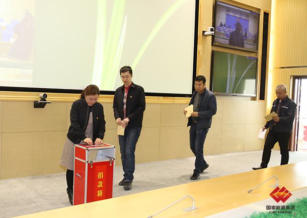图为该公司干部职工积极参与扶贫捐款活动。